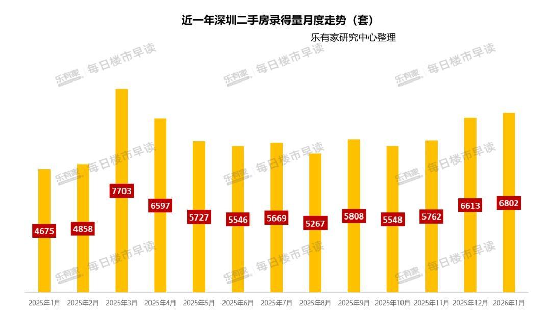 从月度统计数据来看,市场的回暖态势也得到了确认。乐有家研究中心数据显示,1月深圳二手房录得量为6802套,环比上涨2.9%,同比上涨45.5%,创近10个月新高。(注:最终录得量以深房中协月报为准)1月深圳二手住宅网签量为5281套,环比上涨6.9%,同比上涨16%,也创近9个月新高。
