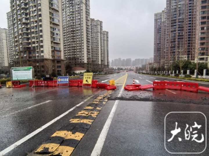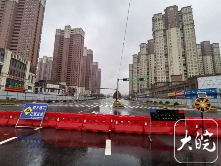 大皖新闻记者首先来到施工现场北端,这里是长安北路与解放北路交口处,原先的施工围挡已被拆除,只有一排水马作为临时隔离物横在路口,旁边有施工安全警示牌,该路口的红绿灯已经安装到位。